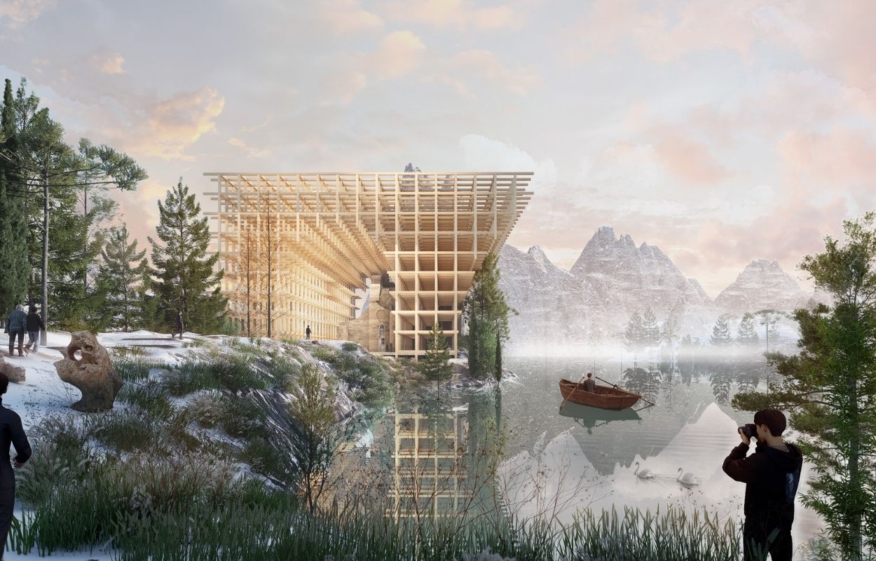 These three entries were selected by the jury for their clear vision, architectural coherence, and innovative use of timber as both structure and expression. Each presents a thoughtful and well-articulated approach to sustainable design, standing out as the strongest proposals of the competition.