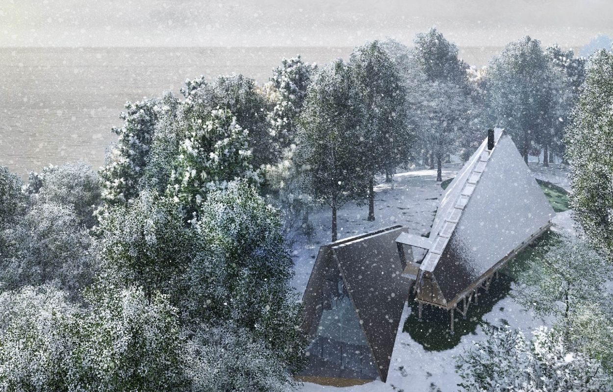 CASA DICHOTOMY reinterprets the primitive hut for a contemporary, digitally-connected world. Modular and ritualistic, the design explores dichotomies: solitude and connection, tradition and technology, shelter and openness. Divided by nature’s golden angle, its timber modules shift between zones for reunion, restoration, and regeneration. Prefabricated timber panels meet at steel joints with botanical logic, while a photovoltaic roof produces energy and supports edible plants. This cabin is both a retreat and a prototype — a reflection of personal consciousness and a seed for future communities.